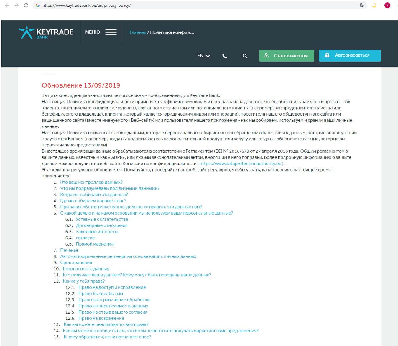 - Обзор политики конфиденциальности Кей Трейд Банка