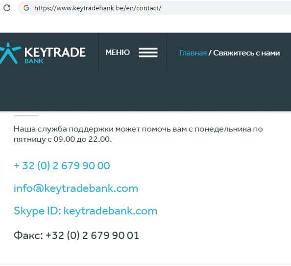 На главном интернет ресурсе компании Кей Трейд Банк предоставлена контактная информация, с помощью которой клиент якобы может обратится за помощью, или задать вопросы сотрудникам фирмы, которые обязаны ответить и предоставить информацию, которую запрашивает клиент.