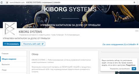 Помимо этого, шулера Kyborg Systems также обзавелись страницей в рабочей социальной сети LinkedIn. Данная социальная сеть является отличной возможностью для мошенников найти себе звонарей, которые будут досаждать людей, предлагая им "заработок без вложений", который в итоге лишит клиента всех его денег.
