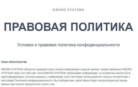 Политика конфиденциальности мошеннической организации Kyborg Systems