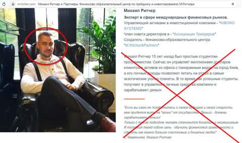 Набравший за последнее время популярность веб-сайт Михаила Ритчера является владельцем конторы Kyborg Systems. С помощью неё данный жулик собирает деньги вкладчиков под предлогом доверительного управления финансами. На деле же это просто развод, рассчитанный на кражу денег у клиентов.