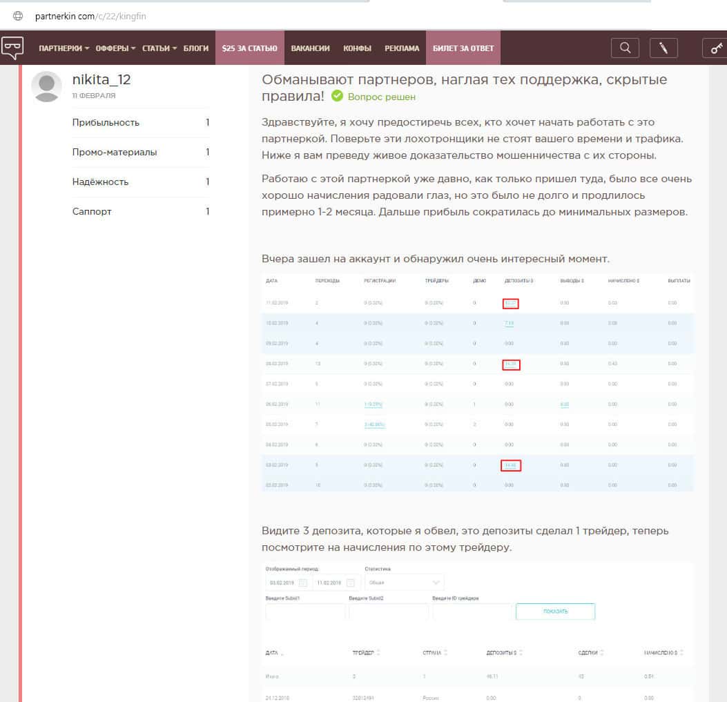 - Шедевр обувательства доверчивых трейдеров с помощью партнерской программы КингФин