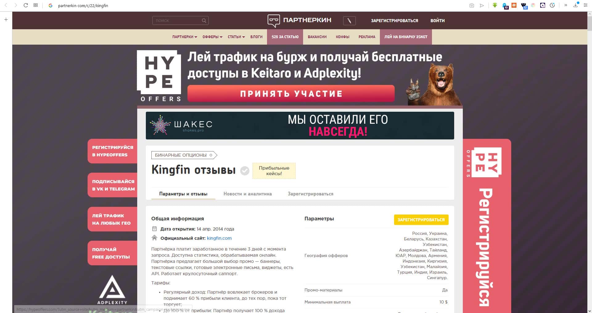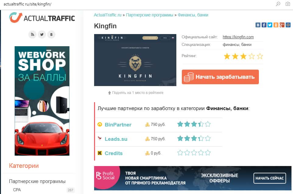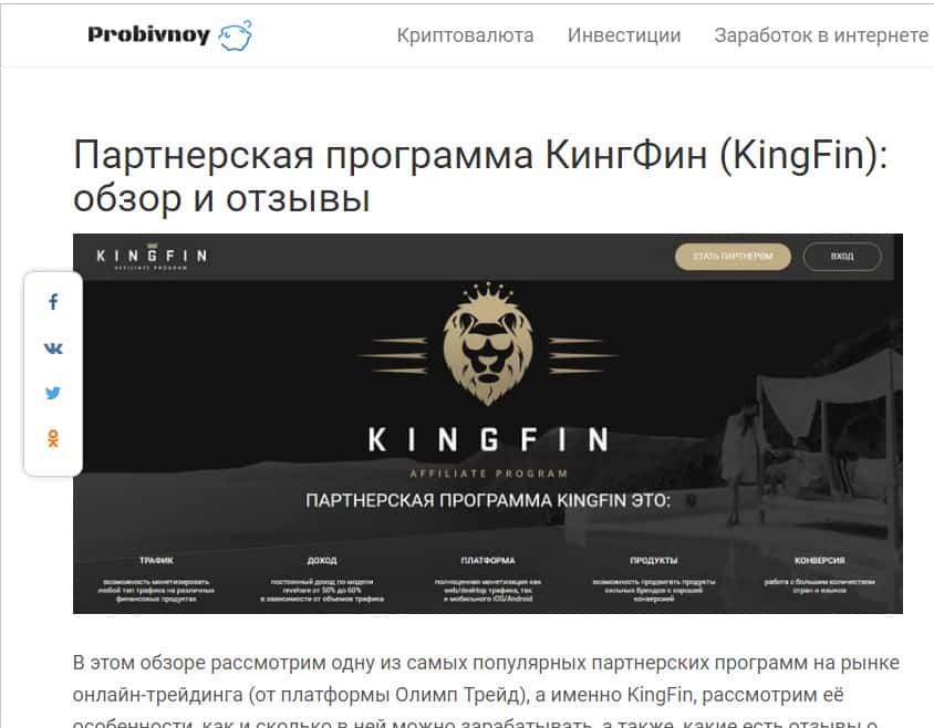 - Партнерская программа КингФин в рекламном обзоре на пробивной ком