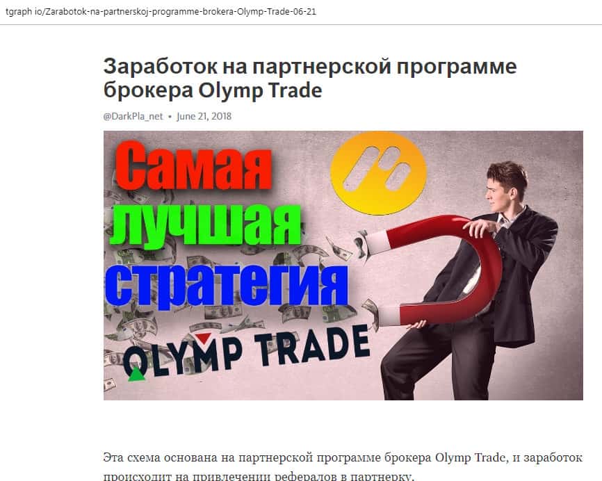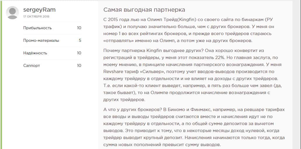 И портал AFF1 ru решил также пропиарить партнерскую программу - компанию КингФин торговой площадки ОлимпТрейд. Все хотят заработать на реферальных ссылках, привлечении новых лохов, на обмане и лжи брокеров и самих пиарщиков. Похоже понятие совести в этом мире больше не котируется.