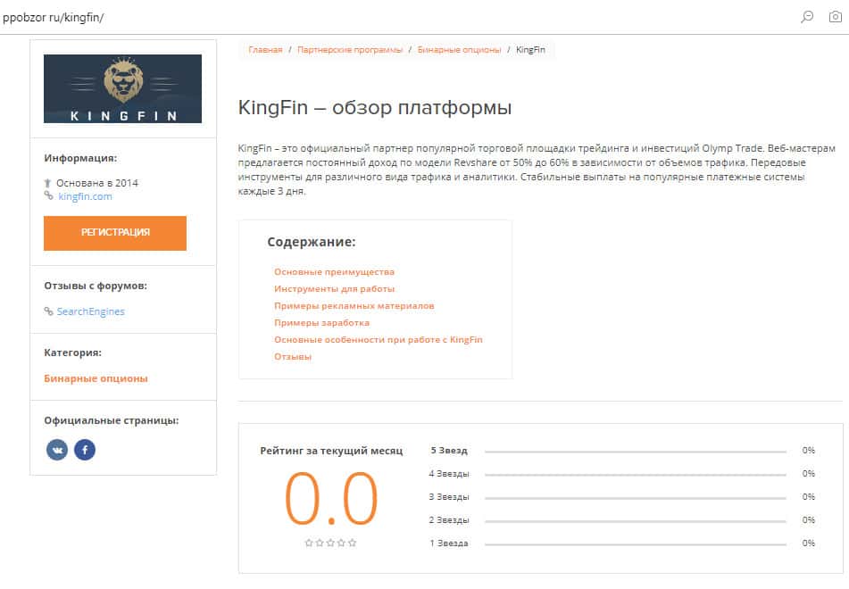 - Рекламная статья KingFin на портале ppobzor ru с нулевым рейтингом