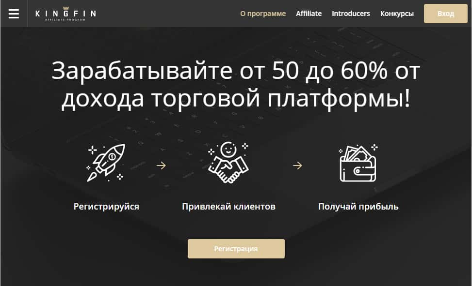 Реалистичная картинка участия в партнерской программе KingFin на портале vsebrokery com