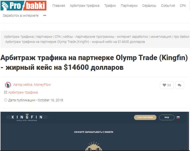 Рекламой самой торговой площадки ОлимпТрейд пропитана реклама принадлежащей её партнерской программы КингФин. Эту рекламу расположили на сайте best-partnerki ru. Промоутеры решили убить одним выстрелом сразу двух зайцев - пропиарить саму торговую площадку и её партнерскую программу прицепом.