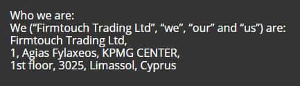 Затем эта компания открывает другую компанию, зарегистрированную уже в другом оффшоре, скажем на Кипре. Ну, к примеру: FIRMTOUCH TRADING LIMITED. Предлагают обращаться в суды Англии и Уэльса. Затем запутывают клиента своими сведениями, кому и что принадлежит, кто за что отвечает. А на самом деле, никто ни за что отвечать не собирается!