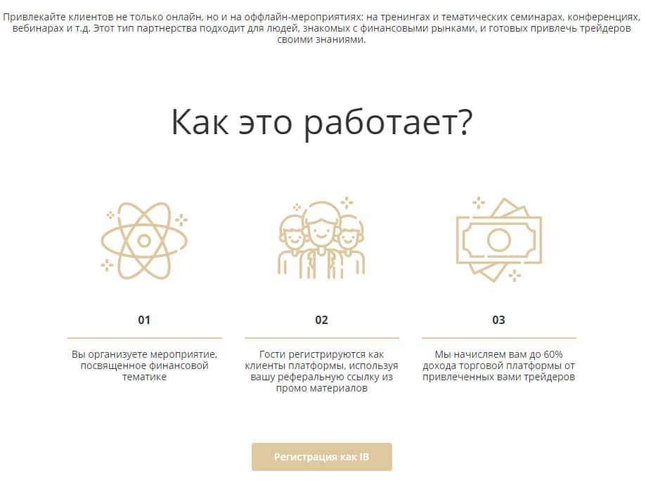 Этот вариант сотрудничества отличается от предыдущего только переносом Вашей деятельности из сети Интернет в реальный мир. Вам предлагают рекламировать торговую площадку ОлимпТрейд, проводя в реальном мире различные конференции, семинары, тренинги, другие рекламные акции, приводящие всё новых лохов на Олимп Трейд.