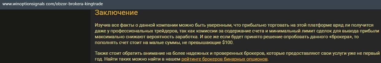 В данной статье указано, что контора Кинг Трейд имеет все факты, которые подтверждают, что прибыльно торговать на этой платформе не получится - они приложат руку к вашему сливу.