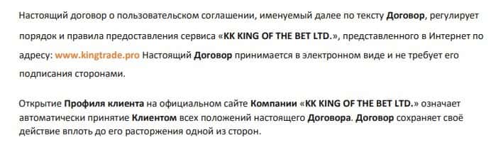 Клиентское соглашение конторы Кинг Трейд