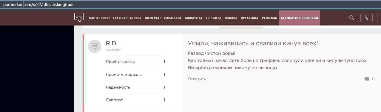 Отзывы о лохотронской организации Кинг Трейд
