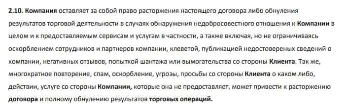 Лохотрон Кинг Трейд оставляет за собой право расторжения настоящего договора либо обнуления торговых результатов без объяснений и предварительных предупреждений.