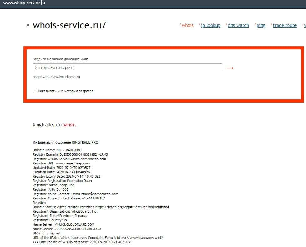 - Кто владеет доменом портала KingTrade Pro?