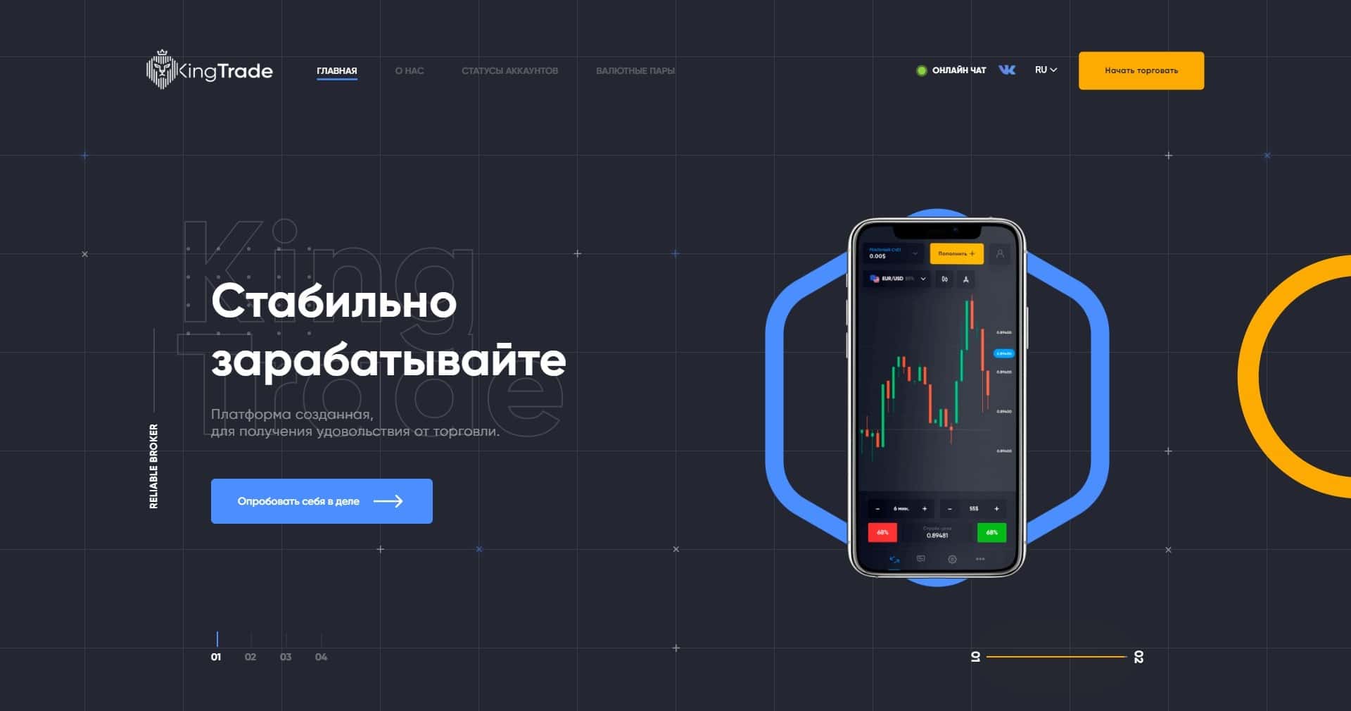 - Главная страничка веб-ресурса KingTrade Pro