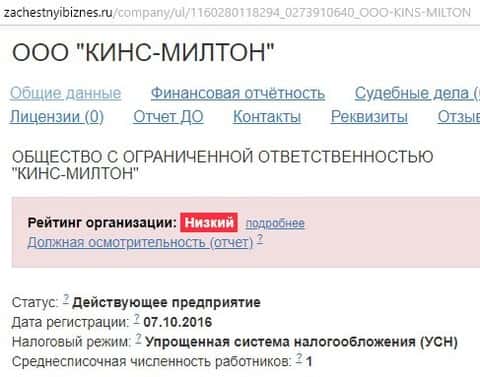 Поискав в интернете информацию про Кинс Милтон можно наткнуться на весьма правдоподобную информацию о конторе, но (спойлер) это всего лишь пелена в глаза. Кухня разместила свой главный офис по адресу: 450015, респ Башкортостан, город Уфа, бульвар Ибрагимова, дом 32, ОФИС 1А. Поискав информацию о Kins Milton дальше, мы наткнемся на структуру предприятия, исходя из которой сделаем выводы - лицензия фиктивная (чисто ради галочки). Да, в наше время любая деятельность должна быть зарегистрирована, но это не является признаком честности.Так выглядит сайт мошеннической организации Кинс Милтон