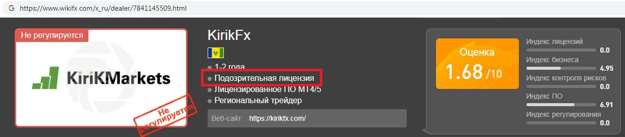 У псевдо-брокерской организации KirikFx подозрительная лицензия