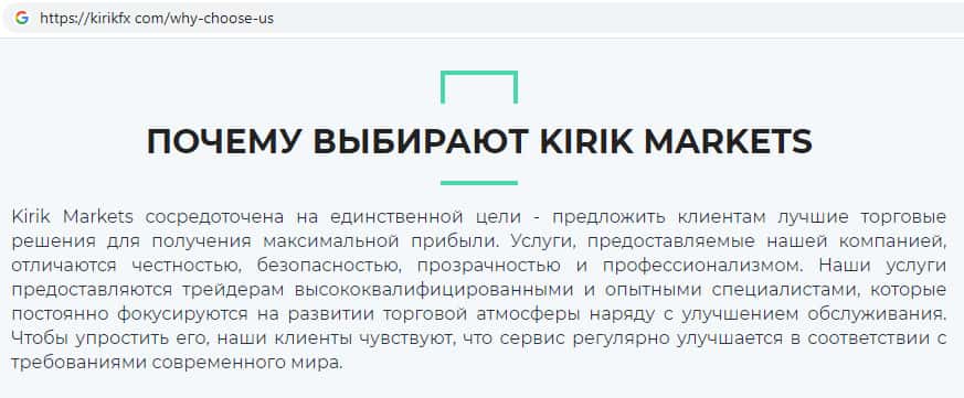 Аферисты Kirik Markets обещают идеальные условия для торговли