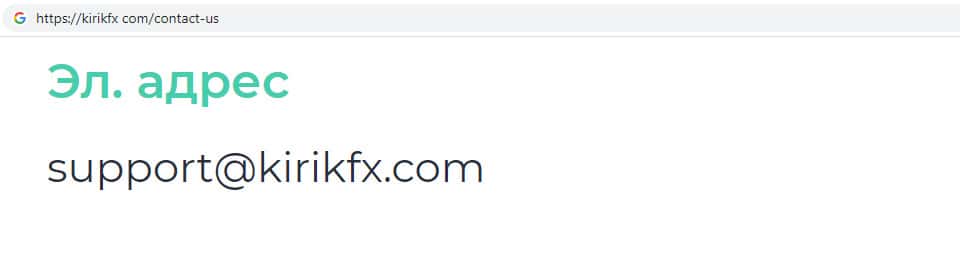 - адрес электронной почты брокерской конторы Кирик Маркетс: support@kirikfx com