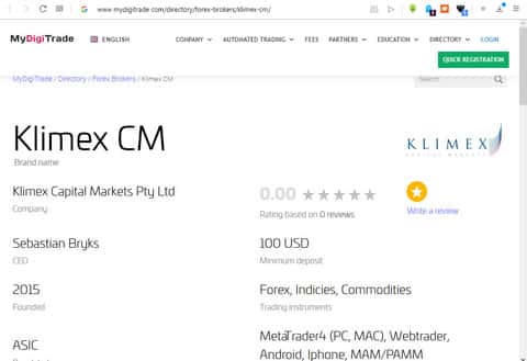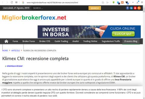 "Klimex Capital Markets (нажмите здесь, чтобы получить бесплатный торговый счет DEMO senza vincoli) и брокер, базирующийся в Сиднее, в Австралии." - слова из статьи, написанной на сайте migliorbrokerforex о мошеннической кухне Клаймекс СМ, которая была написана по заказу, и цель последнего - попытка распиарить скам-проект для обворовывания больших масс населения. Это даже доказывается тем, что информационная статья не соответствует официальной информации.