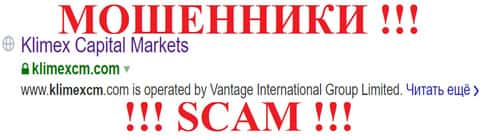 Klimex CM - это мошенническая кухня, выдаваемая себя за честного и надежного брокера. Но не стоит верим чужим словам неизвестных людей наслово. Нет никакого сомнения, что этот сервис лжеброкер активно занимается скам-спекуляциями для обворовывания своих наивных клиентов. Это можно понять, введя только в адресной строке браузера название их кухни. НЕ рекомендуем связываться с лохотроном Клаймекс СМ!!!