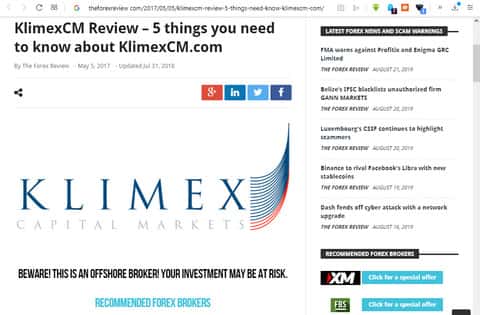 Клаймекс СМ заказали статью о выгоде работы с нимиMigliorbrokerforex раскручивает scam-проект Klimex CM