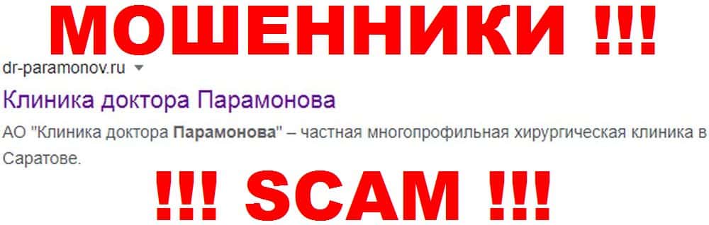 Клиника Доктора Парамонова - мошенники, которые грабят клиентов, в том случае если они и Вас обворовали или пытались обмануть, то сообщите Ваш e-mail в форме для обратной связи чуть ниже, и тогда с Вами установят контакт.