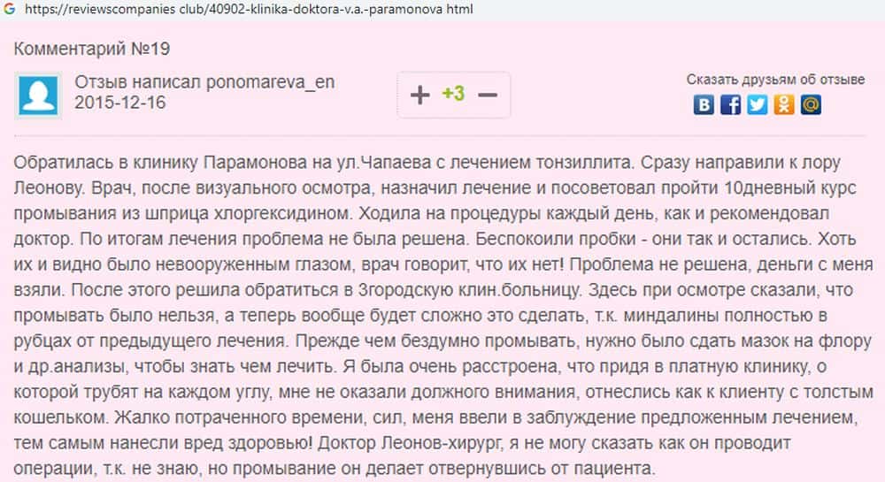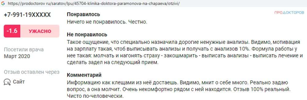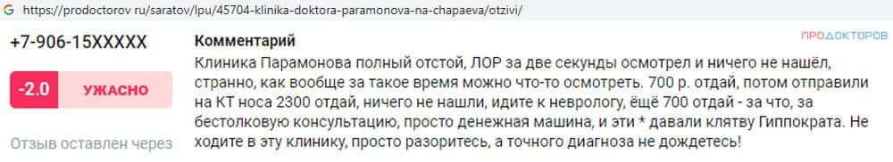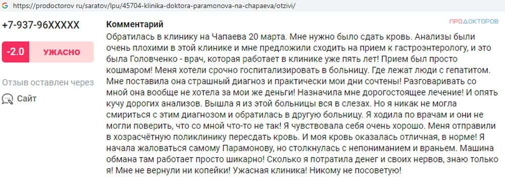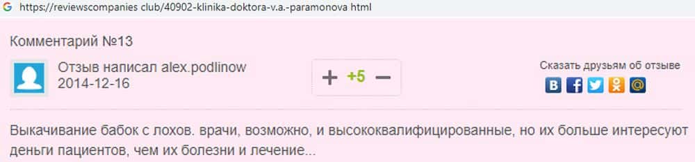 - Жулики Клиника Доктора Парамонова светят фиктивными отзывами