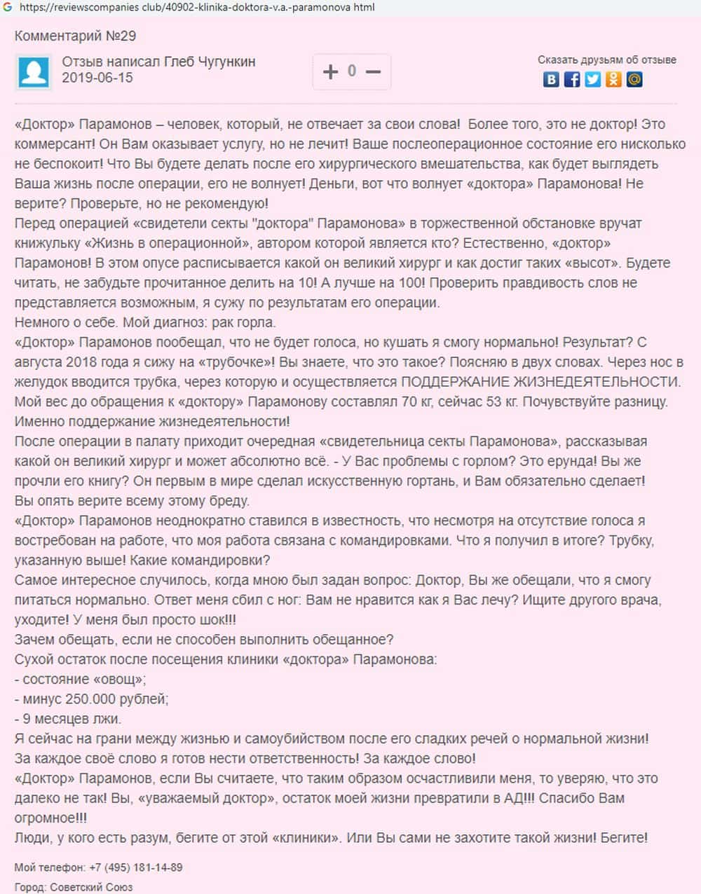 - Аферисты Клиника Доктора Парамонова калечат пациентов ради наживы