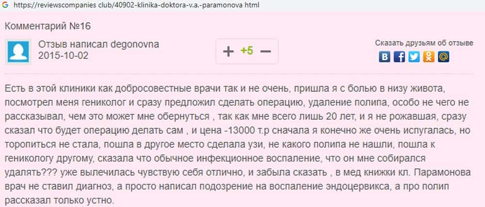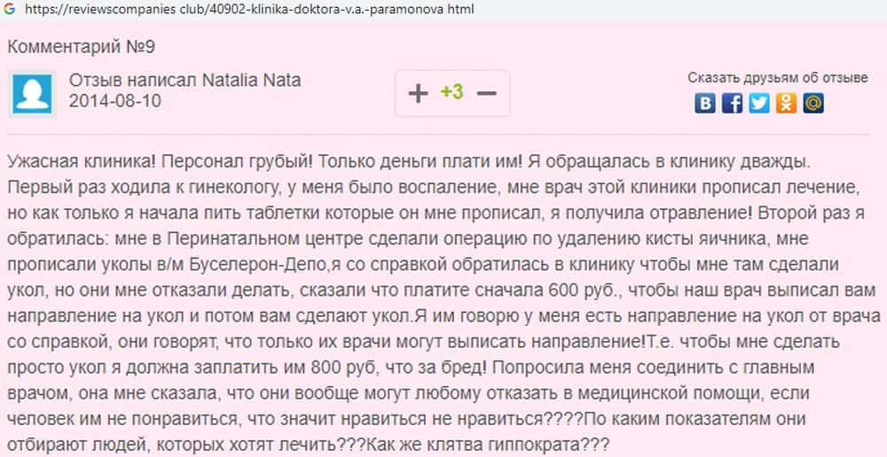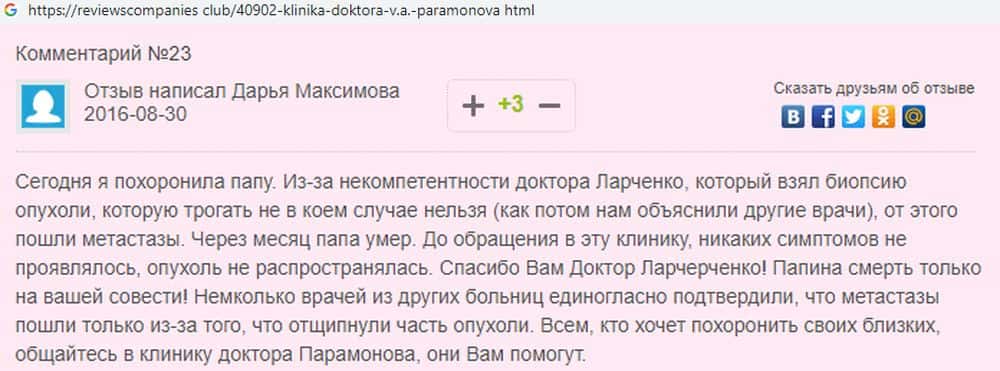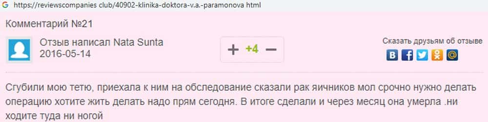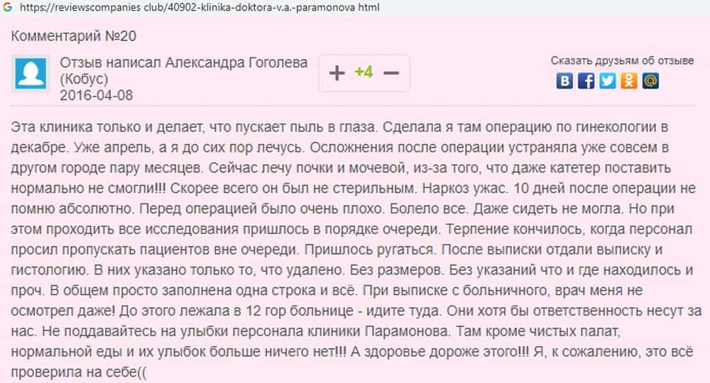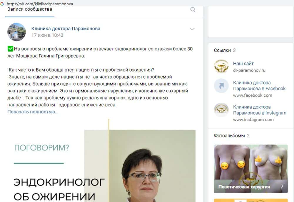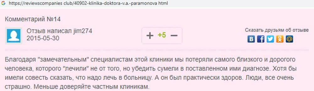 - Деятельность проходимцев Клиника Доктора Парамонова в социальных сетях