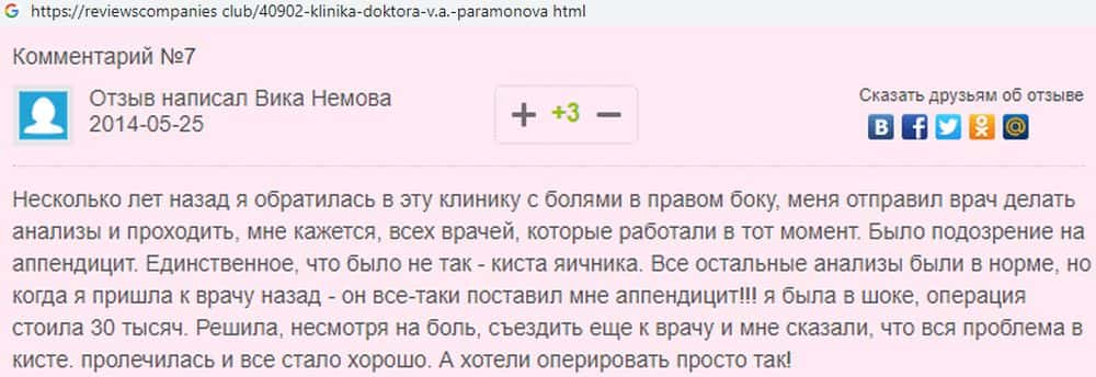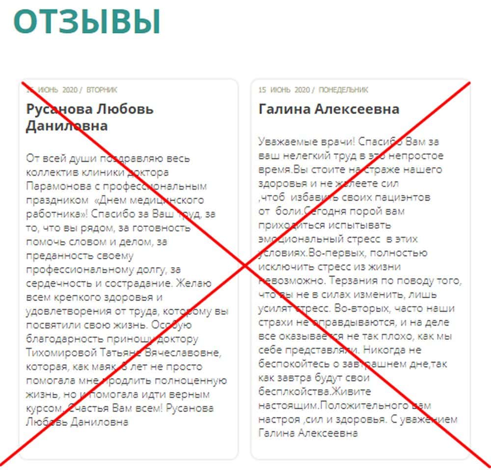 Жулики Клиника Доктора Парамонова светят фиктивными отзывами