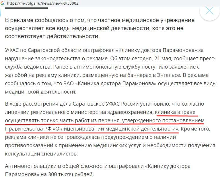 Что не так с услугами проходимцев Клиника Доктора Парамонова