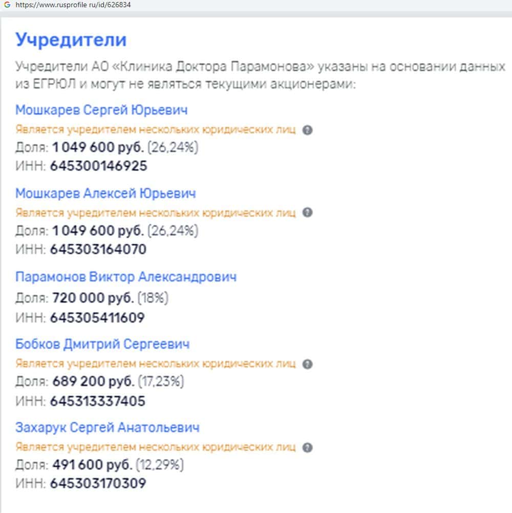 На самом сайте информации об учредителях нет, а единственным царем аферы Клиника Доктора Парамонова называется сам Парамонов, который является и генеральным директором. В стенах своего "детища" он появляется редко, так как параллельно ведет еще несколько подобных скам-проектов. Псевдоклиникой в его отсутствие правят заместители: