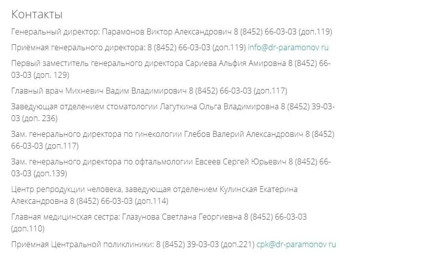 Контактных данных своих проходимцы Клиника Доктора Парамонова не прячут. Есть, правда, одна странность. На всю шарагу в два корпуса всего два номера телефона. На сайте один и тот же номер прописан и как приемная гендиректора, и как номер центра репродукции человека, и как приемная старшей сестры. Контакты мошенников: