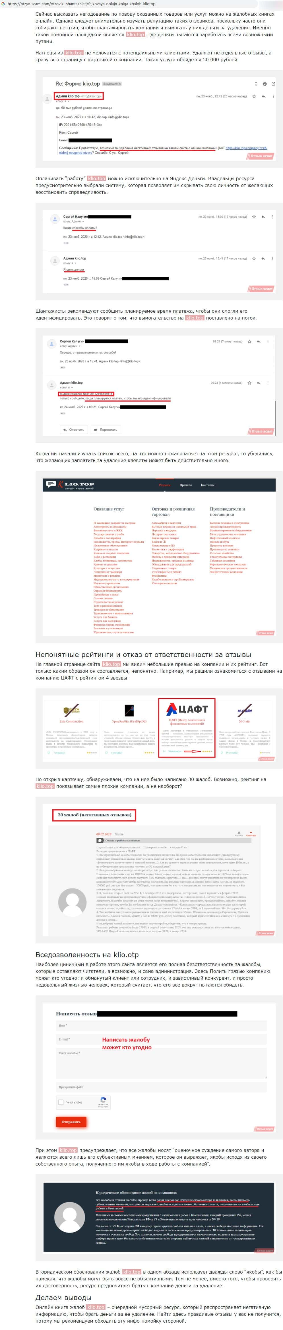 - Правдивое мнение различных интернет-порталов о фирме шарлатанов Klio Top
