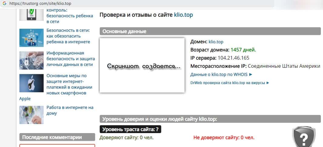 - Возраст домена жуликов из шарлатанского отзовика Klio Top на интернет-площадке trustorg com