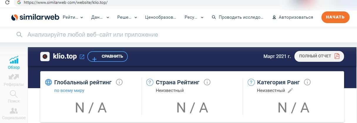 - Данные об интернет-ресурсе лоховода Клио Топ на веб-странице similarweb com
