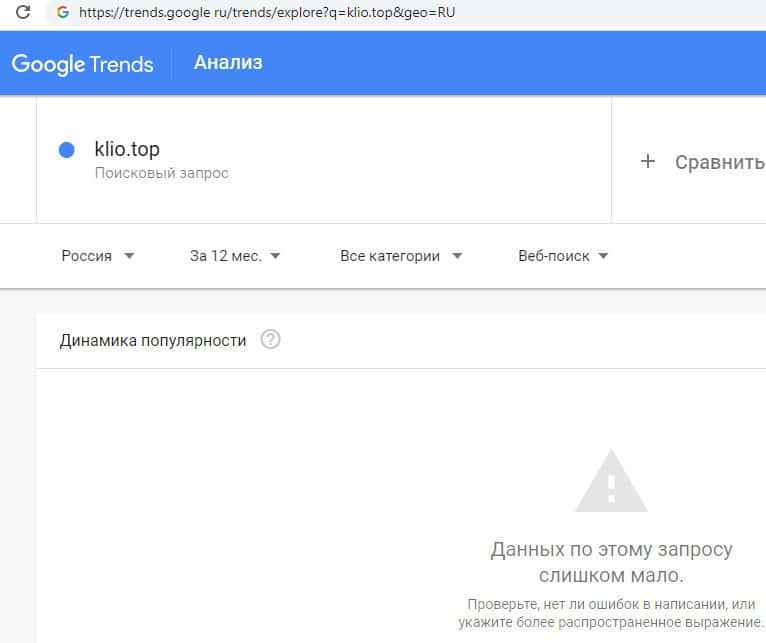 Сведения по запросам доменного имени проходимцев из Klio Top в поисковой системе Google