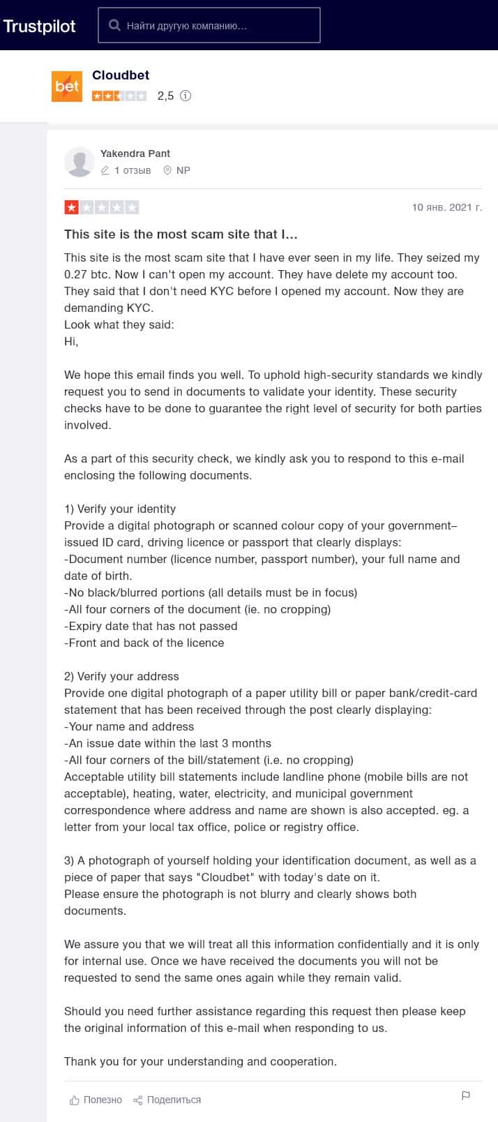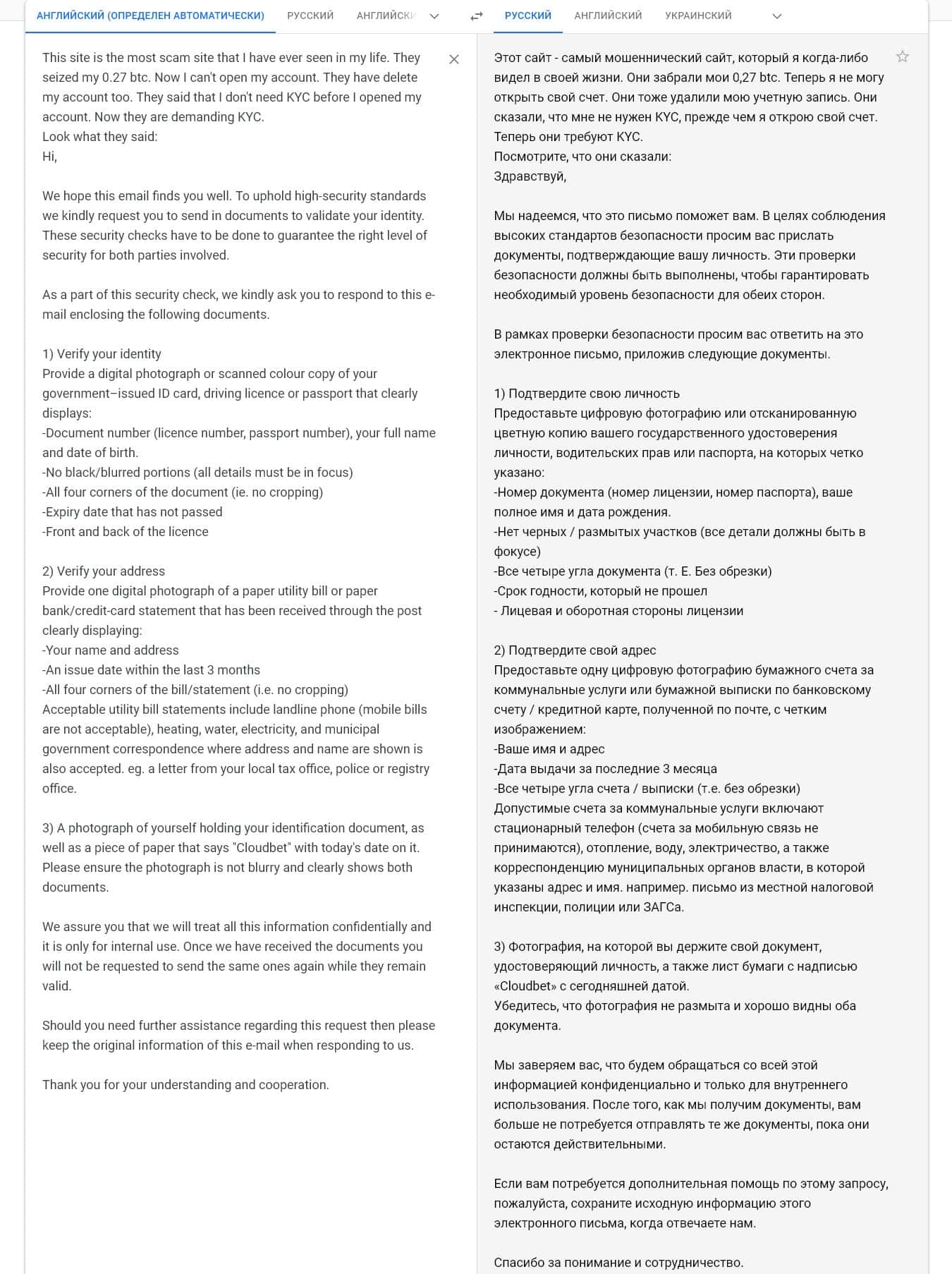 Сообщения об жуликах CloudBet надо распространять МАКСИМАЛЬНО массово, чтобы защитить от их рук своих земляков.