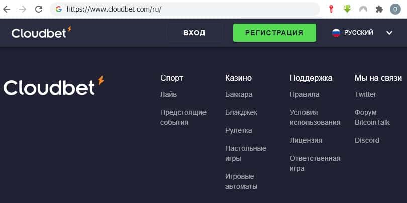 Знакомство с главной страницей казино и букмекера Клоуд Бет