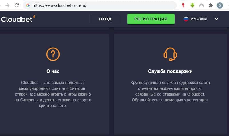Портал жуликов Клоуд Бет по поводу технической поддержки клиентов содержит довольно много пафосных заявлений о её качестве и доступности.