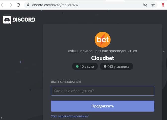 Ну, а последняя ссылка предлагает посетителю присоединится к сообществу любителей букмекерской конторы Клоуд Бет на Discord, состоящему из 463-х участников.