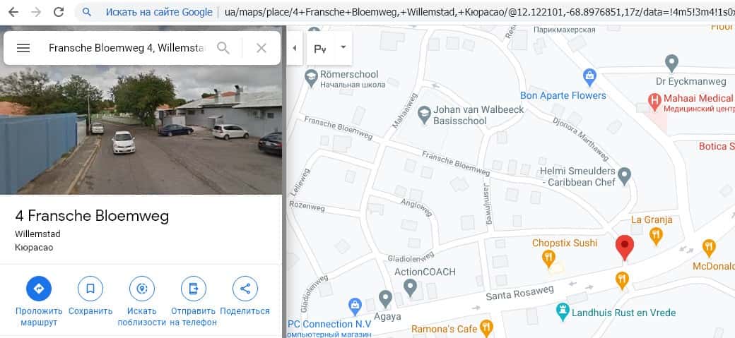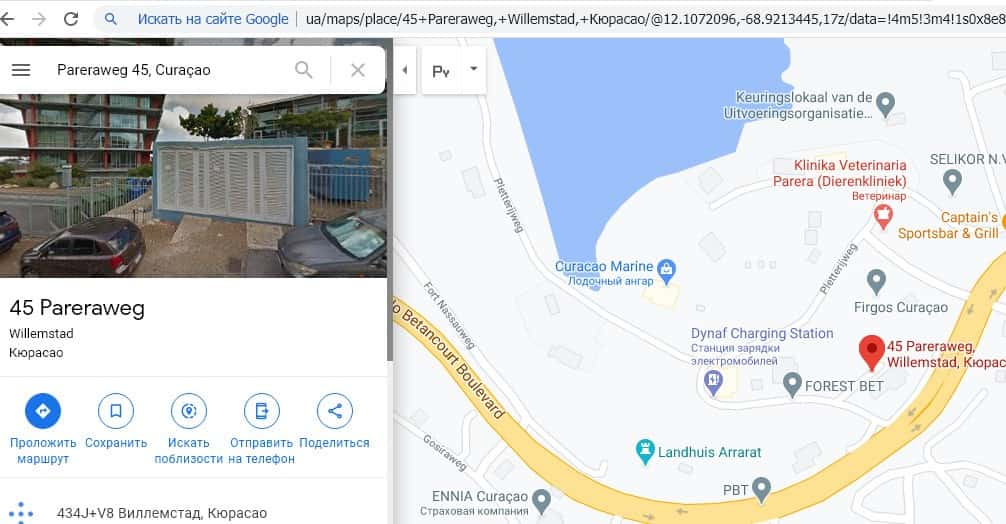 Там же удаётся найти адрес физического офиса управляющей компании в городе Уильямстад на острове Кюросао: