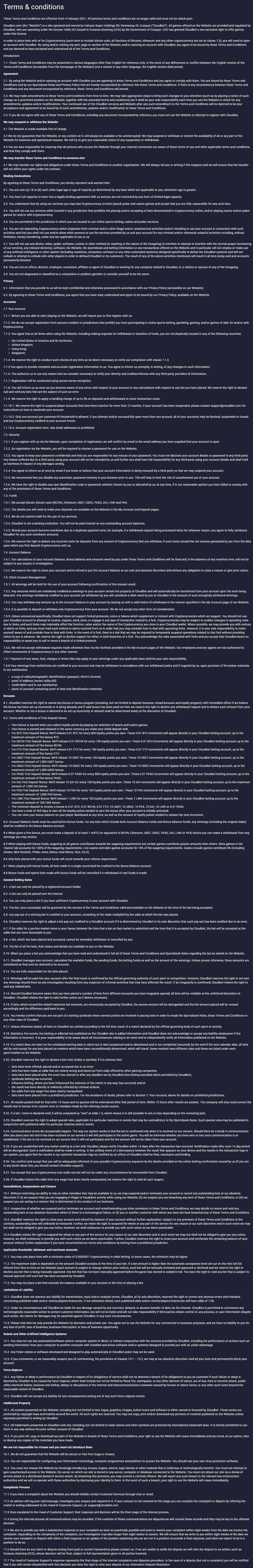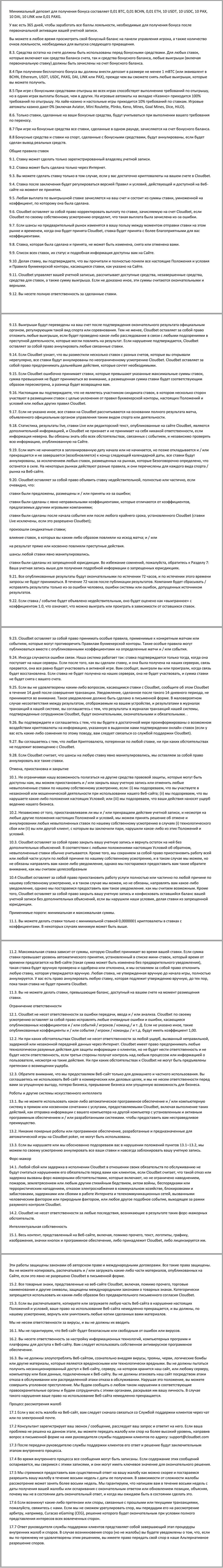 Для более скрупулёзного изучения клиентского соглашения с этими мошенниками представляем ниже полный его текст, опубликованный на портале букмекерской конторы Клоуд Бет.