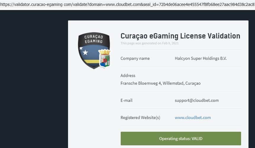 Согласно информации, опубликованной на портале мошенников, юридически этот проект казино Клоуд Бет представляет компания с названием Halcyon Super Holdings B.V.