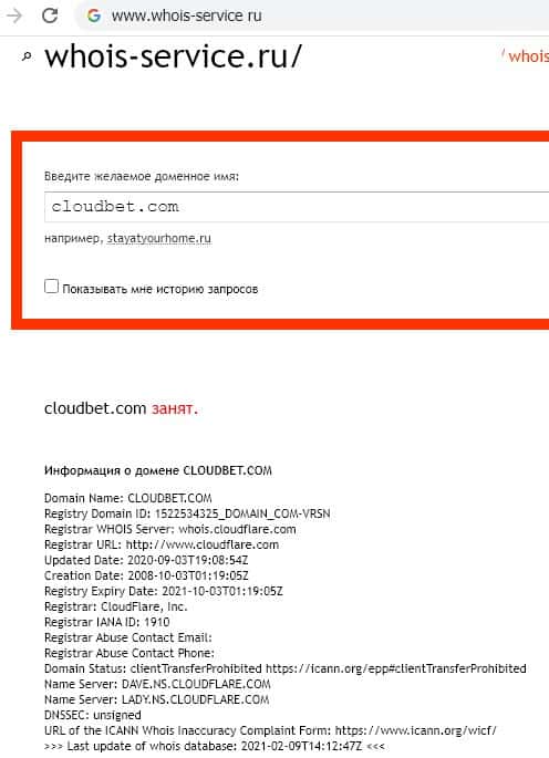 - Что известно о принадлежности домена букмекерской конторы Клоуд Бет?