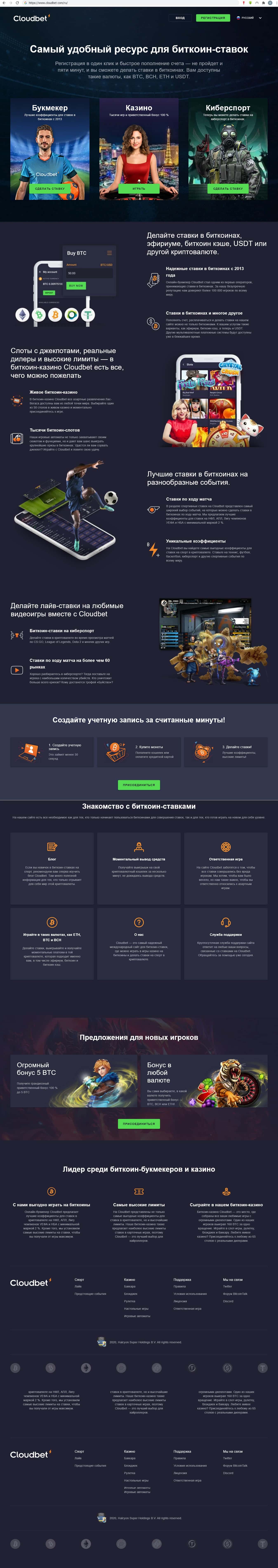 cloudbet com - непосредственно сайт мошеннического проекта Клоуд Бет