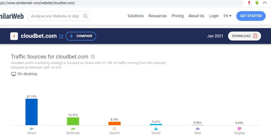 - Анализ портала мошенников из казино и букмекерской конторы Клоуд Бет сервисом similarweb