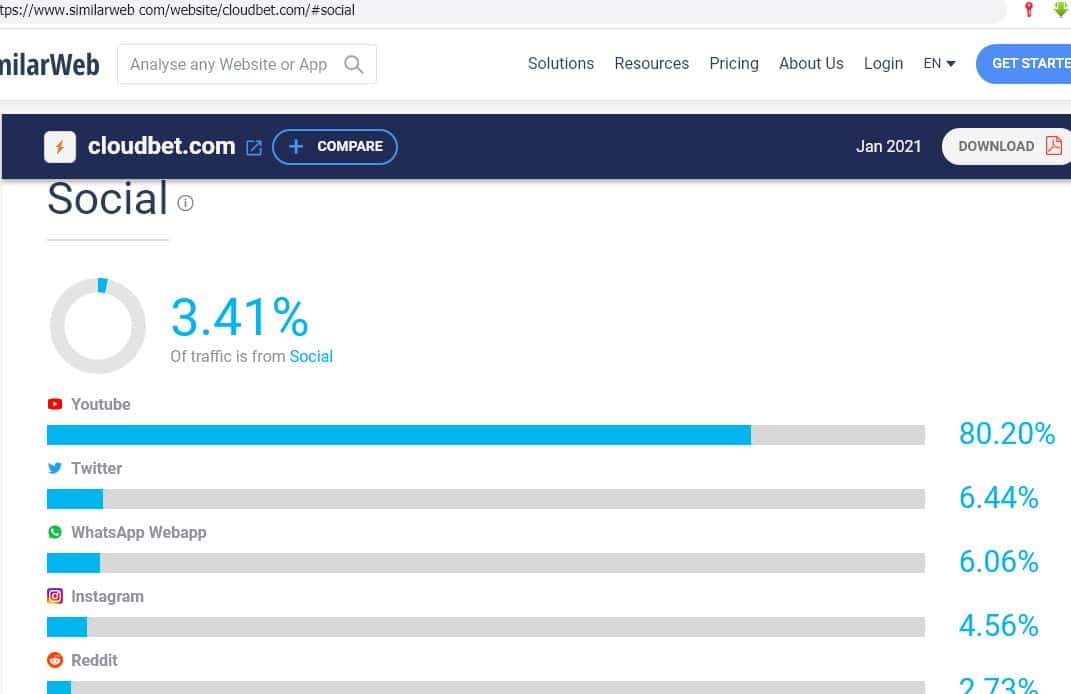 Анализ портала мошенников из казино и букмекерской конторы Клоуд Бет сервисом similarweb
