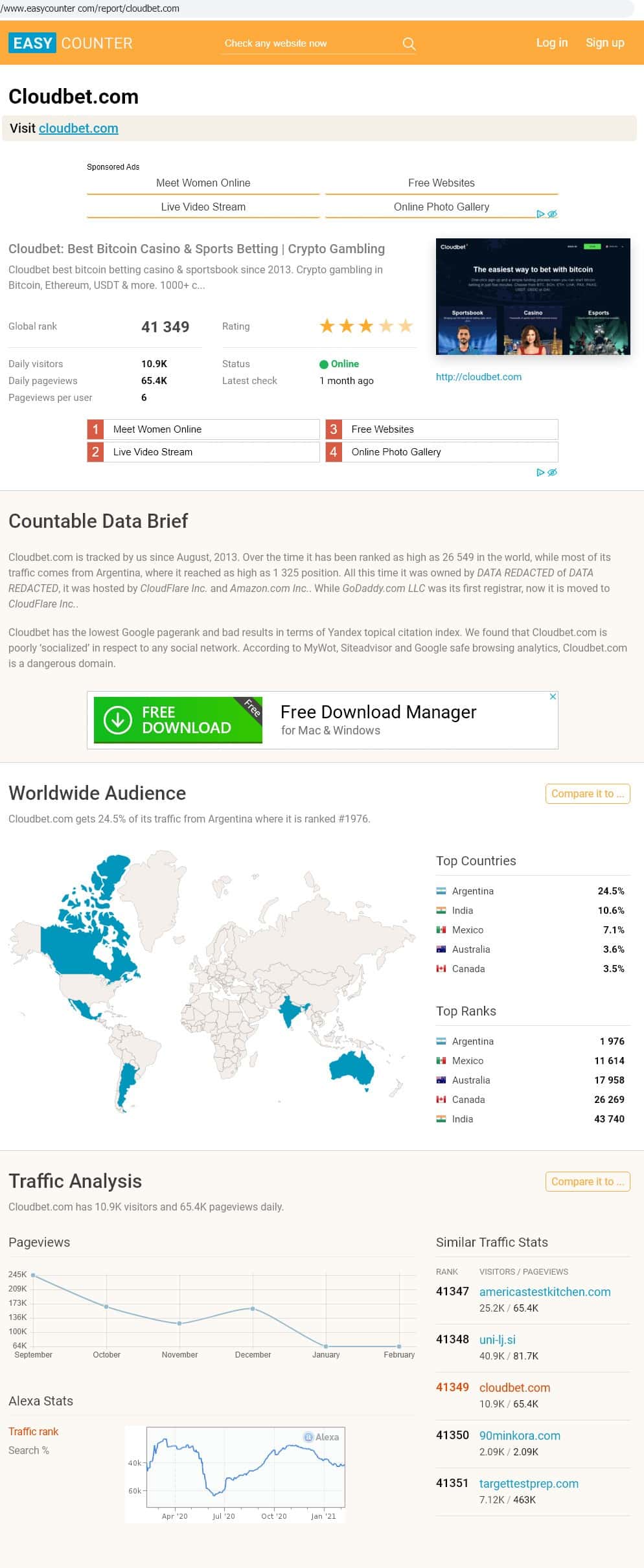 Анализ посещаемости портала аферистов Клоуд Бет по сведениям сервиса easycounter
